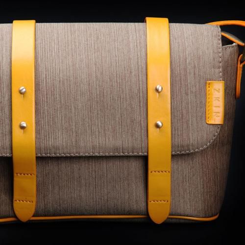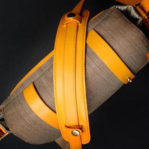 素材感のあるファブリックに本革のストラップがアクセントになっています。