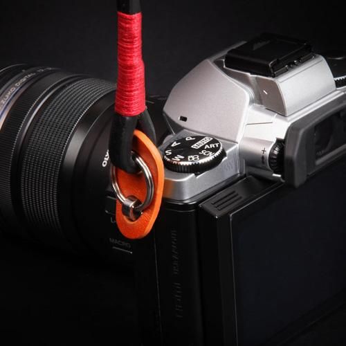 カメラにはストラップ端のメタルリングを通して取り付けます。